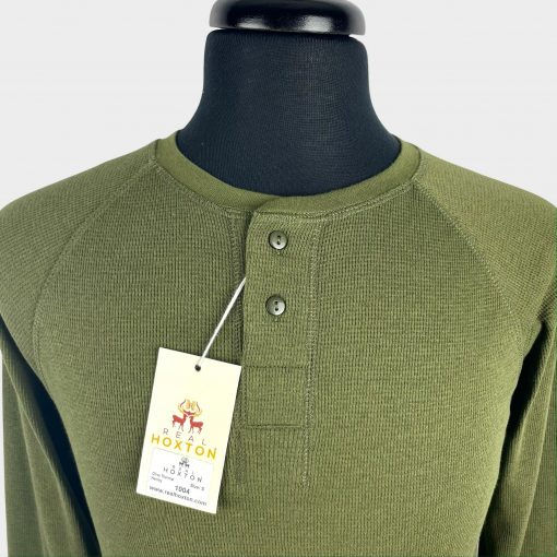 Olive Long Sleeve Waffle Henley 1004